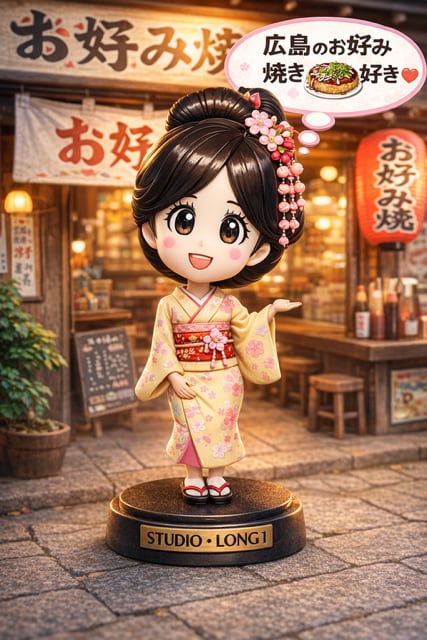 ChatGPTに画像をアップし「吹き出しには〇〇〇〇、台座には〇〇〇〇、背景は可愛い〇〇〇〇屋さんにしてください!」